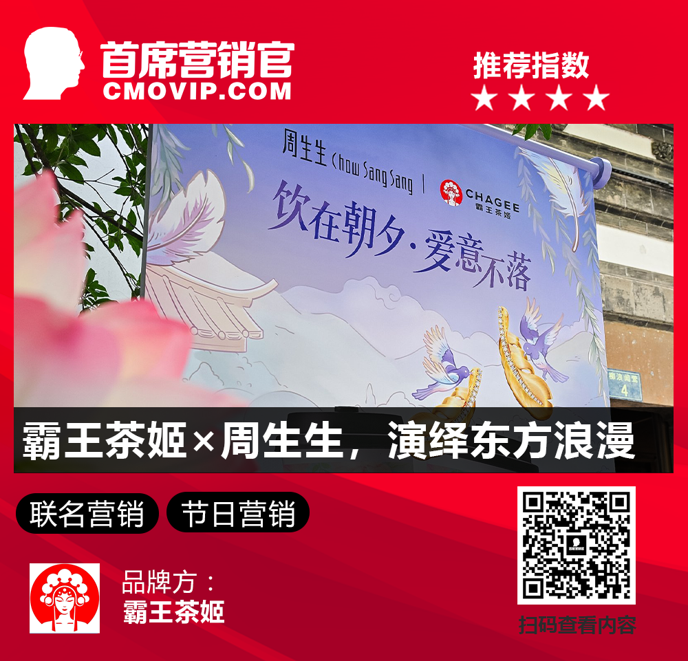 点评:这场跨品类合作,既借霸王茶姬的日常消费属性降低珠宝品牌的触达门槛,又以周生生的仪式感为茶饮消费赋予浪漫价值。