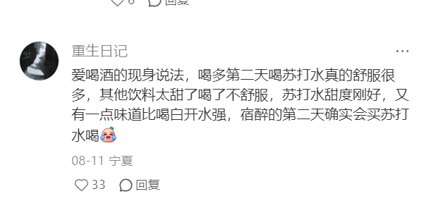 正如网友“重生日记”所言:“喝多第二天喝苏打水真的舒服很多,其他饮料太甜了,苏打水甜度刚好。”这种健康属性,让名仁苏打水成为白酒消费场景中的“标配”。