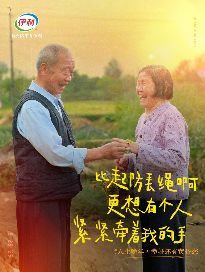 伊利作为首个聚焦银发爱情议题的品牌,呼吁社会各界正视并支持银发群体的精神情感诉求。人老了不是只能过重阳,他们只是长大了的年轻人,总会有一些瞬间,让人感叹“幸好还有黄昏恋”。