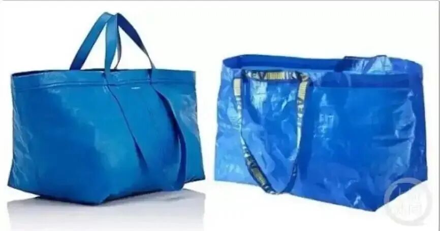 早在2017年,巴黎世家的一款包袋就因为外表酷似塑料袋引起全网热议,亮蓝色的外观,宽肩带的设计,超大尺码的空间,一切都像极了游荡在大街上的犀利哥手上的同款,关键是想高昂的售价撑起故事,但与隔壁宜家不到10块钱的产品雷同,成为笑柄。