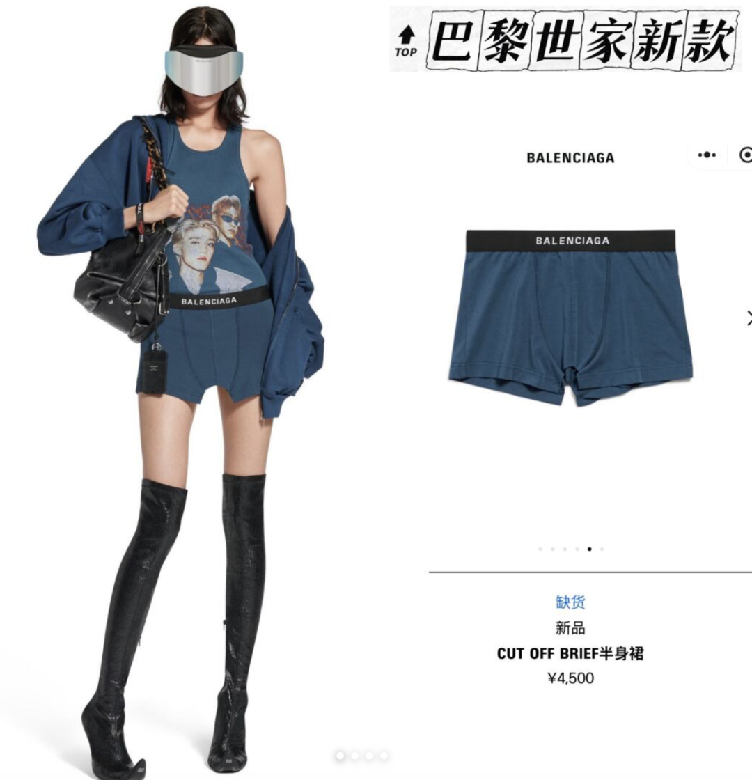 如前段时间爆笑全网的新款女士短裙,被调侃这简直是一条剪开裆部的男士平角内裤,就因带着巴黎世家的标志,价格狂飙到了4500元。