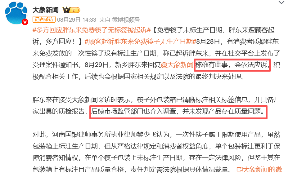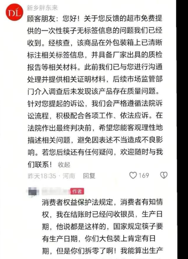 就在不久前,它也因为一次性筷子未标注生产日期遭遇质疑,