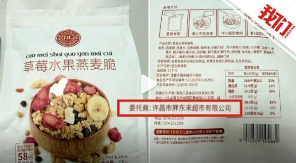 近日,一位顾客在永辉超市买到了一包胖东来自营产品“水果燕麦脆”,却发现包装上找不到生产日期。