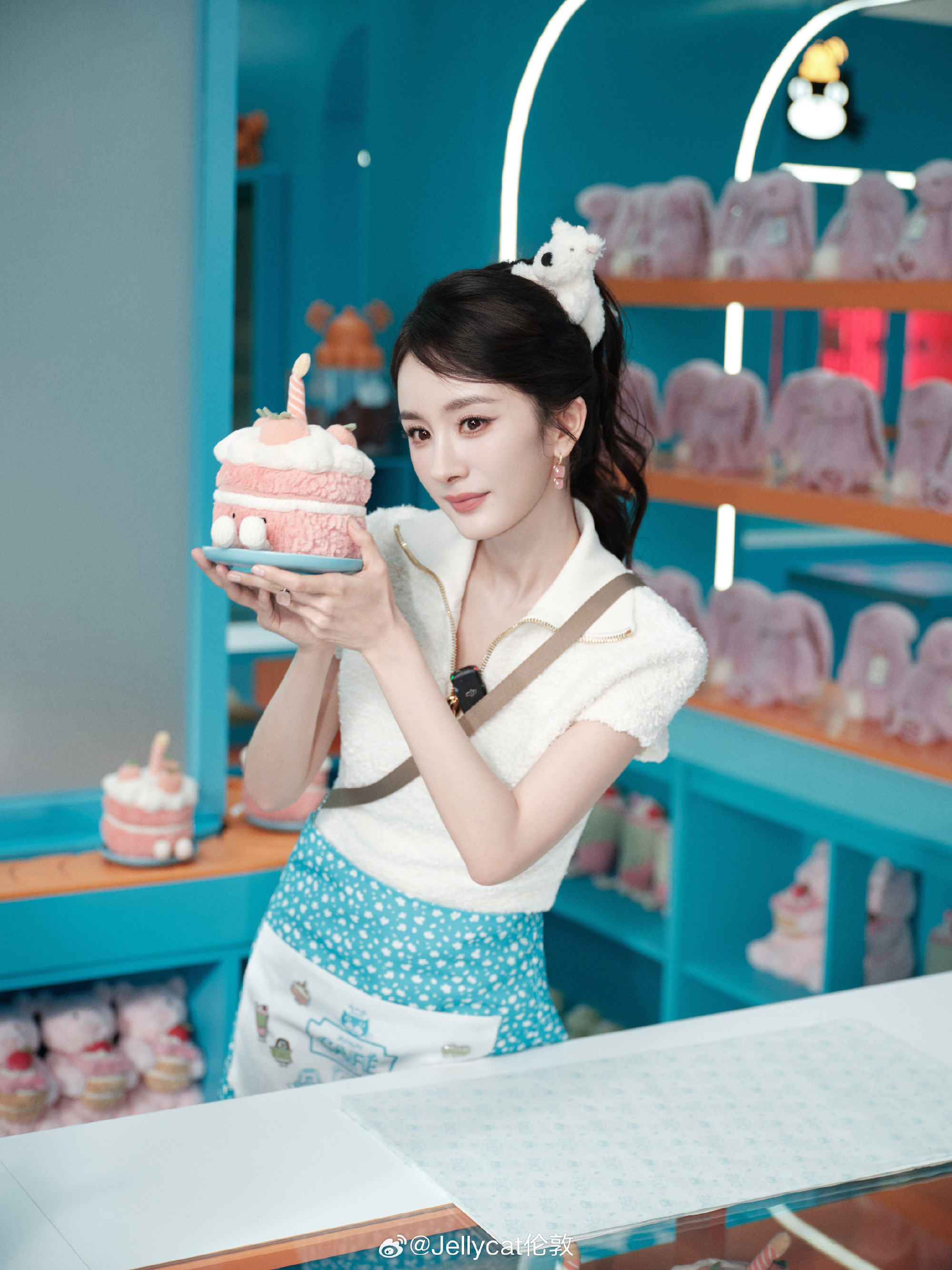 官宣当日,杨幂现身上海恒隆广场 Jellycat CAFÉ 限时体验店,以 “一日店长” 身份与粉丝互动,现场模拟咖啡师制作 “毛绒蛋糕”、与玩偶沉浸式合影,将品牌标志性的 “过家家式” 消费体验推向高潮。
