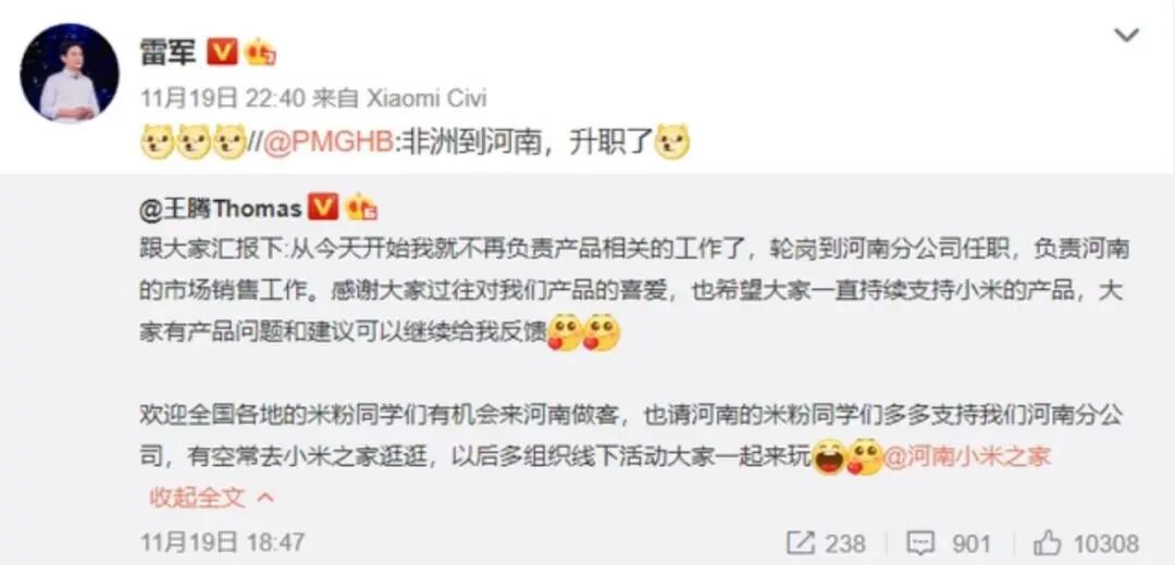 或许是后来被雷军的人格魅力俘获,王腾逐渐认可了小米品牌,并在2016年加入了小米公司。