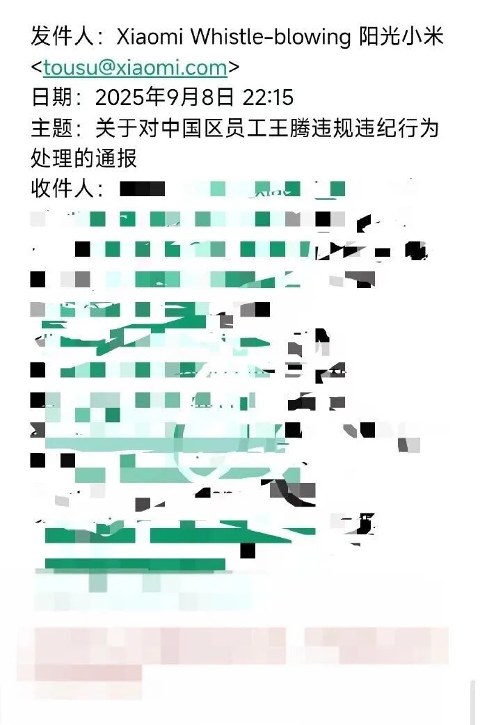 根据凤凰网科技晒出的小米集团职业道德委员会发布的一则内部邮件,通报了对中国区市场部员工王腾的违规违纪处理决定。