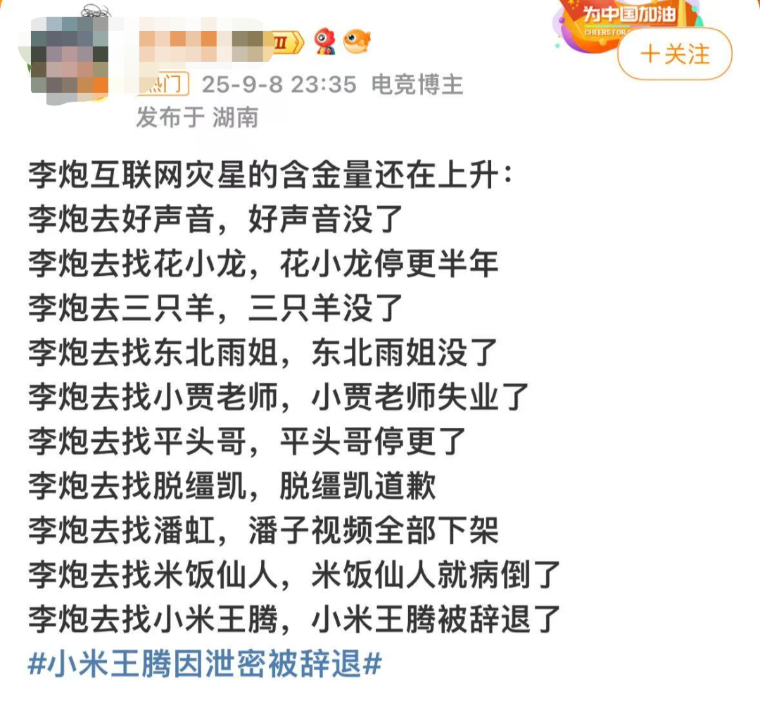 而更离谱的是,有人搬出了“互联网灾星”李炮,毕竟,三只羊、东北雨姐等网红的陨落,都是发生在与李炮合作后。而不久前,李炮刚刚测试过一款红米手机。