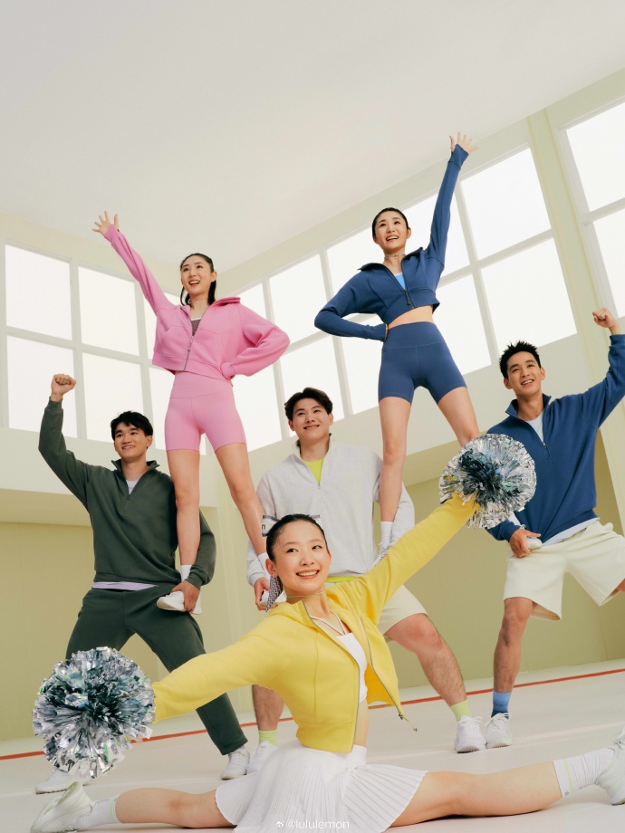 以上场景,发生于lululemon的主题短片《穿Scubarm,为自己喝彩吧》。力与美、精准与即兴、收束与爆发被具像化,花样游泳世界冠军王柳懿、王芋懿将“水上芭蕾”的荣光转化为地面跃动,与西华大学啦啦操队员在训练场融为一体。