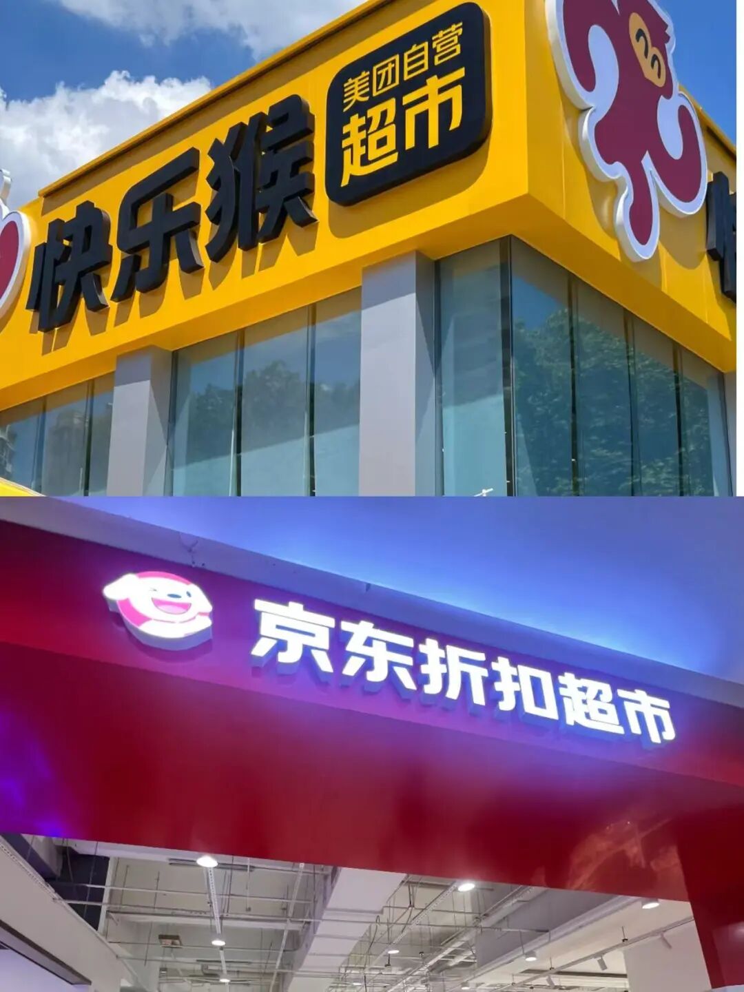 更值得注意的是,战场并未冷却——竞争正转向更隐秘的维度。美团折扣超市 “快乐猴”全国首店于杭州开业,盒马NB 正式更名为 “超盒算 NB”,京东也瞄准折扣店快速跑马圈地。抖音、快手则依托短视频流量继续渗透本地生活。