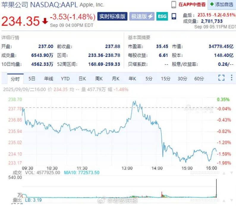 当日最终跌幅达1.48%,市值蒸发524亿美元(约合3732亿人民币)。