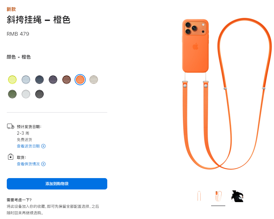 如果要使用这款挂绳,必须先购买官方手机壳——比如iPhone Air的防护边框(329元)或TechWoven保护壳(479元)。