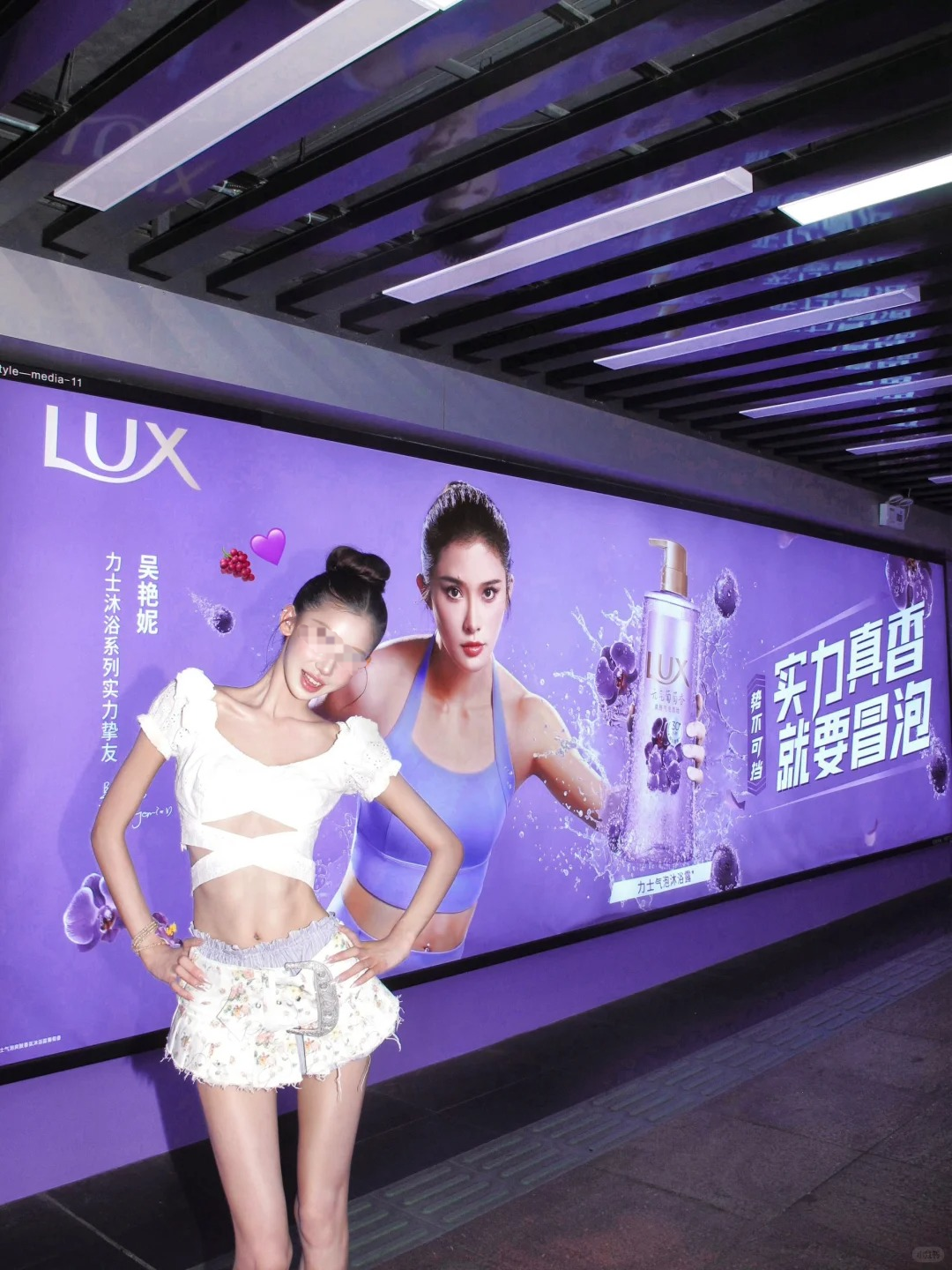 可最近北京、上海的地铁站里,吴艳妮代言力士的海报却成了例外——
