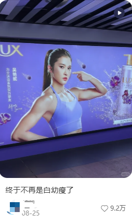 社交平台上有关#吴艳妮力士广告#的话题里,满屏都是“终于不是白幼瘦审美”的留言。