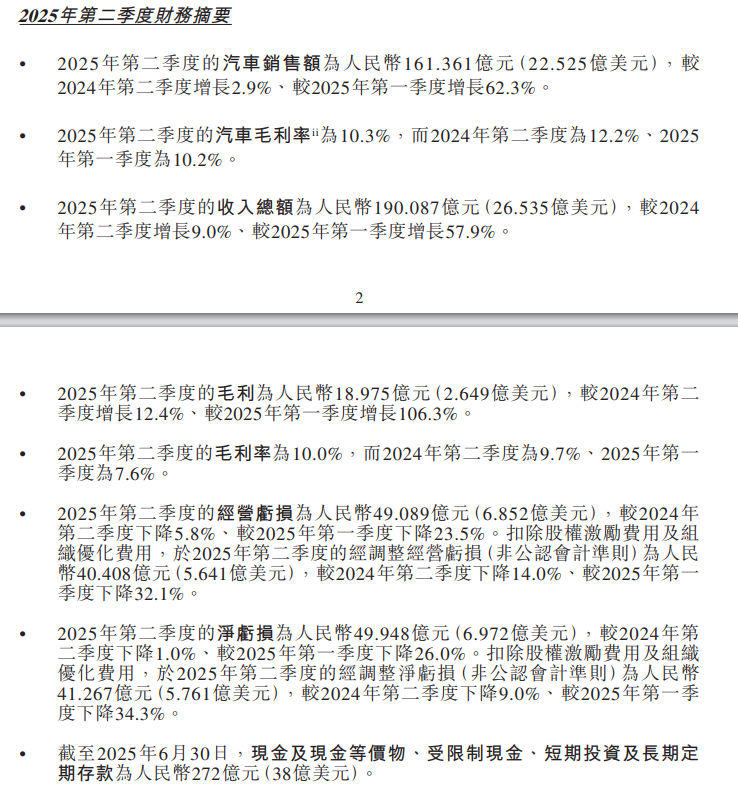 营收190.1亿元,环比增长57.9%;净亏损虽仍高达49.95亿元,但环比已经收窄26%;毛利率回升至10%,现金储备增至272亿元。