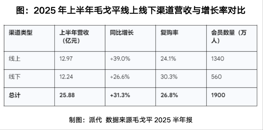 有意思的是,这一模式似乎正在改变。从财报披露的信息来看,2025年上半年,毛戈平线上渠道收入首次超过线下。营收同比增长更大的支撑因素也来自线上的收入增长。