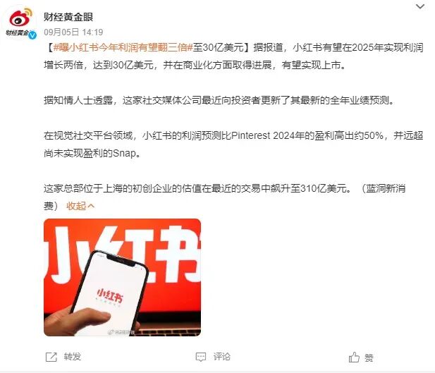 月活跃用户突破3亿,甚至有说法称超过3.5亿;2024年利润已超10亿美元,2025年预计将达到30亿美元;最新估值310亿美元,涨幅19%,直逼百度。