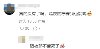 一位蜜门趁机玩起了抽象文学“真的没有了吗,隔夜的柠檬我也能喝”,立刻被回复劝退:“隔夜那不苦死了。”