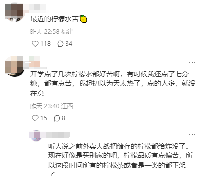 还真别说,就着断货这道口子,好多有网友都反映了最近的柠檬水发苦的现象。