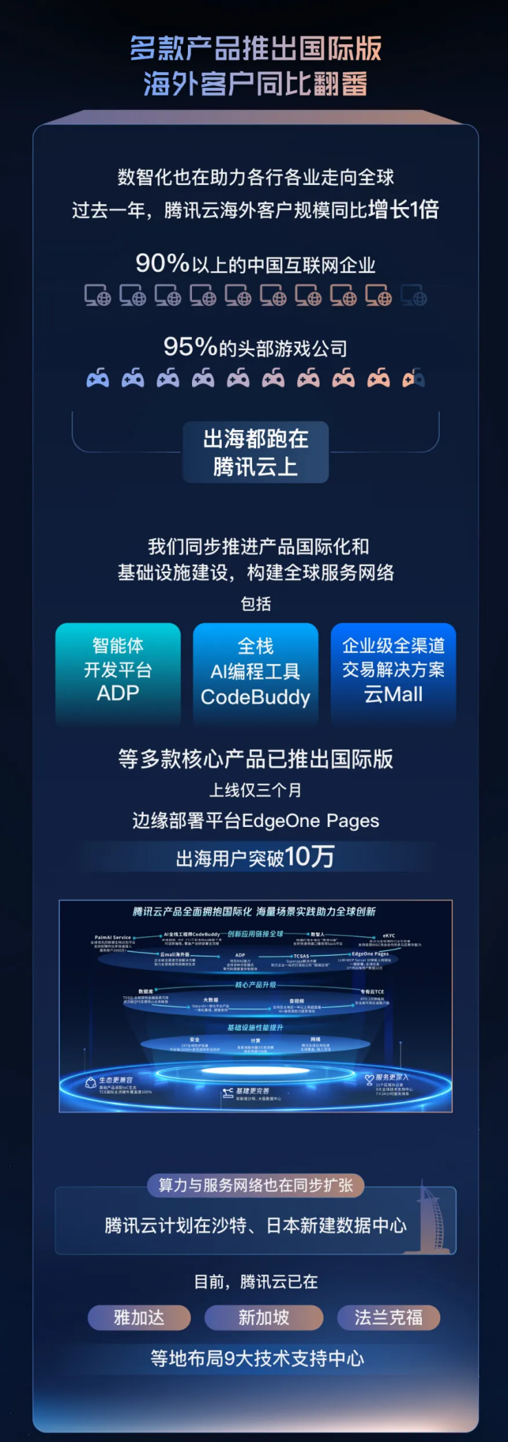 基于此,90%以上的互联网企业和95%以上头部游戏公司,出海都选择了腾讯云。