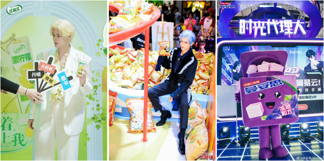 为了看起来像个老二次元,品牌们可谓各显神通。上好佳在漫展发“赈灾粮”,疯狂投喂前来观展的玩家;曼妥思将联名IP《时光代理人》的周边作为互动掉落礼物和抽奖赠品,吸引大量年轻女性粉丝聚集在展台;优酸乳也没闲着,在现场搭了个巨大的霸总展台,邀请Coser卡琳娜站台,还承包了全场的“嚼柠檬”饮品……这些操作生动诠释了情绪消费时代的营销法则——品牌不必刻意“装懂”,只需用好玩的体验、真诚的尊重,才能让年轻人充满好感并主动靠拢。