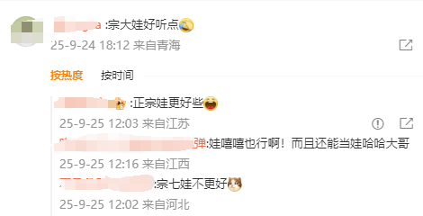 大家在调侃中,也表达出了对“娃小宗”这个新名字的不认可。