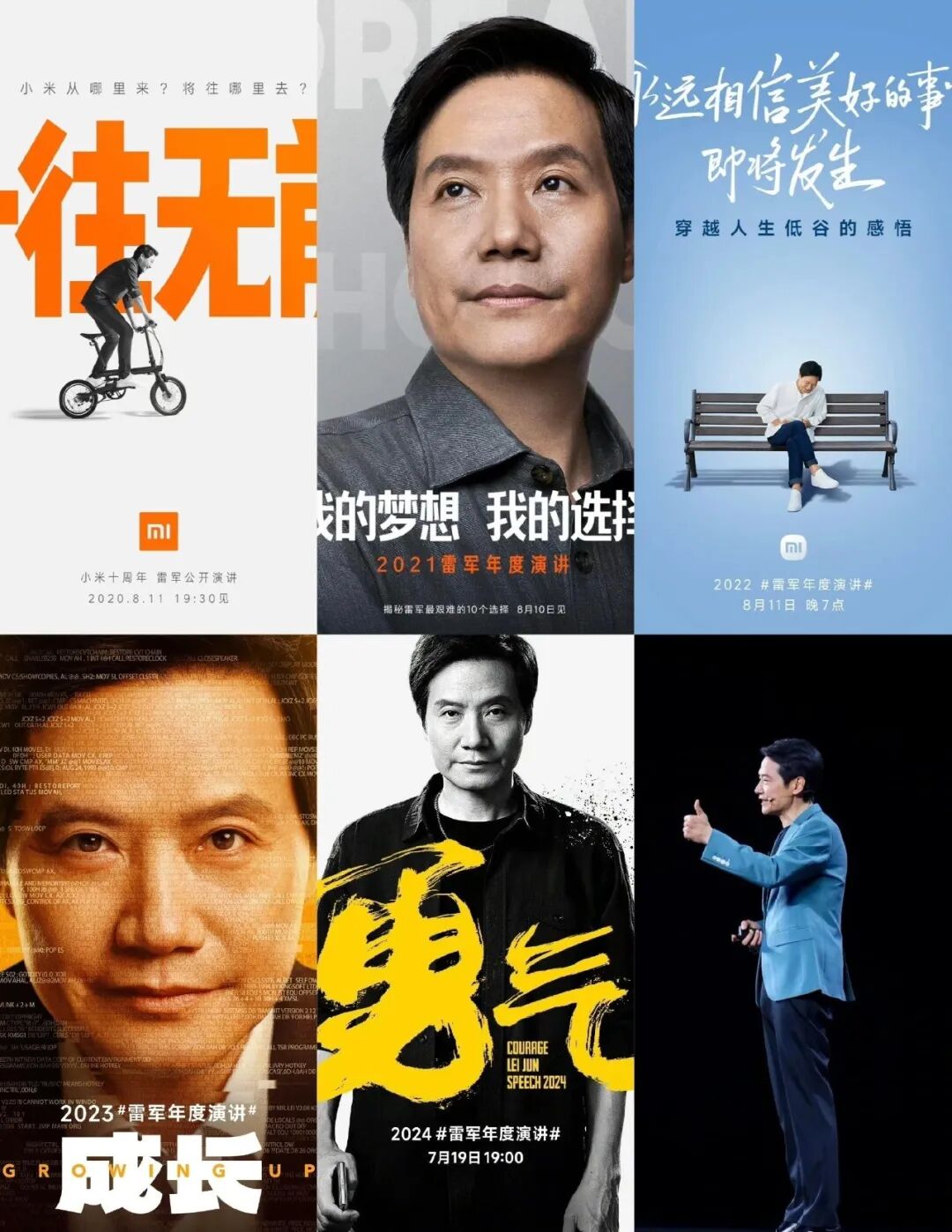 2020年雷军年度演讲主题是《相信自己,一往无前》,2021是《我的梦想,我的选择》,2022是《挫败的馈赠》,2023年是《成长》,2024年是《勇气》,而2025年是《改变》,一起来回顾一下往年演讲的金句文案。