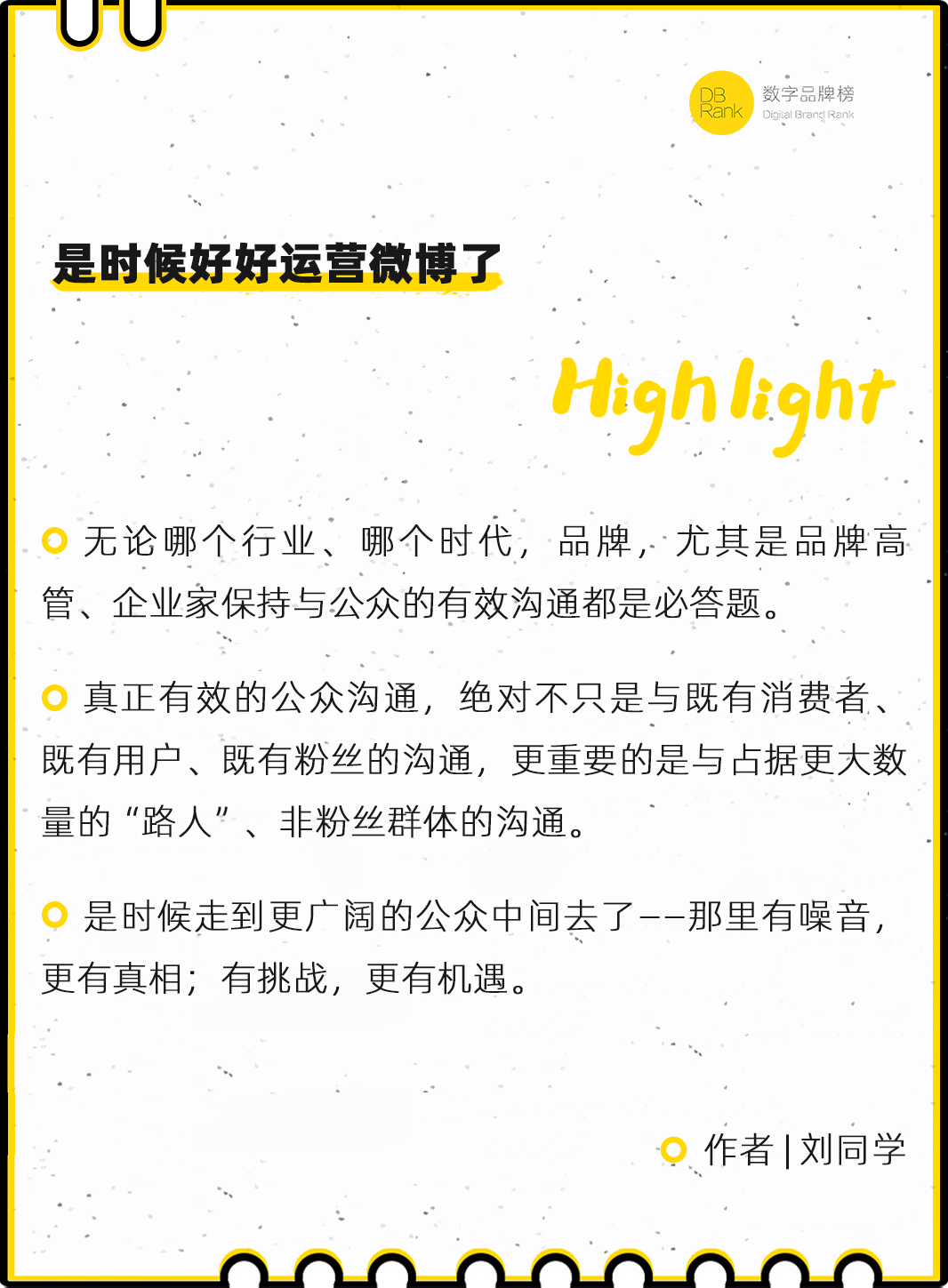 面对当下截然不同的传播语境,敏锐洞察公众情绪、融入新一代表达、实现与公众的有效沟通已成必然之势。但品牌,尤其是品牌的企业家、高管们需要明白,真正有效的公众沟通,从来都不是一场只与核心用户的“内部对话”,而是一场面向更广泛公众的“价值共鸣”。只有跳出“用户圈层”的局限,在微博这样的公众舆论场中持续倾听、真诚互动,才能掌握品牌在社会心智中的真实坐标。