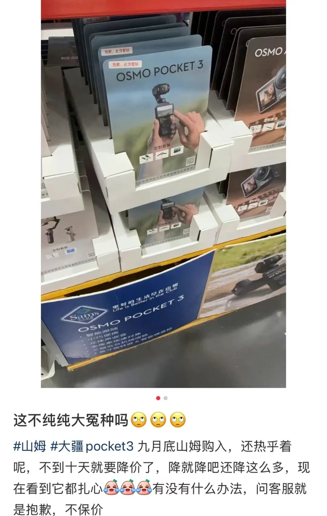 河北一名网友10月7日在线下官方门店买了Pocket 3,当时她反复询问销售是否会降价,得到的答案是“绝不可能”。