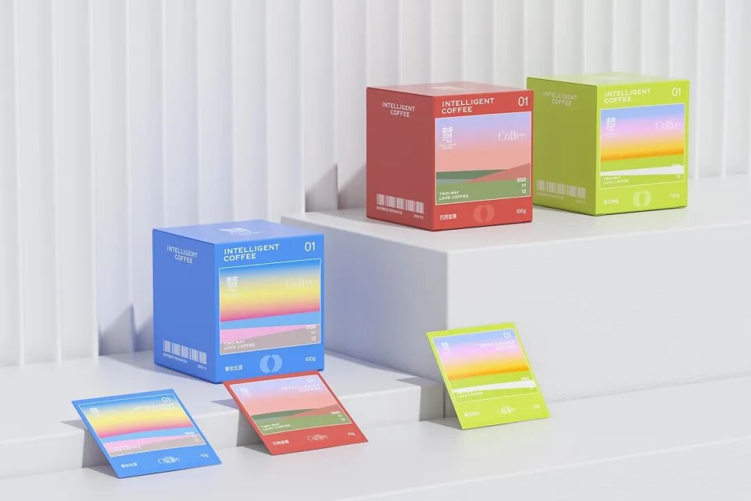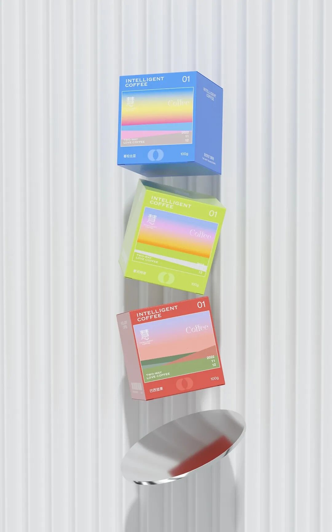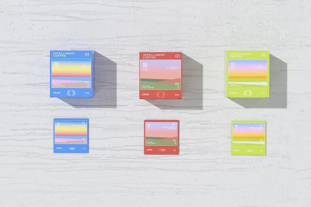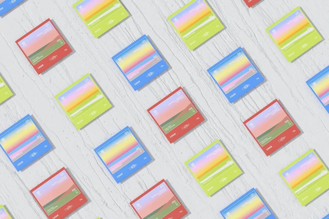 再看到这款故事感满满的咖啡,简直是把彩虹揉进了包装里。渐变的色彩从柔和的蓝到明媚的黄、热烈的红,像一场视觉的 “多巴胺派对”,瞬间抓住眼球。包装形式也很丰富,从盒装到瓶装,还有配套的色彩明快的杯子,打造出一整套的 咖啡美学宇宙,仿佛在邀请年轻人,“快来和我一起,用咖啡开启一场色彩斑斓的生活冒险。”