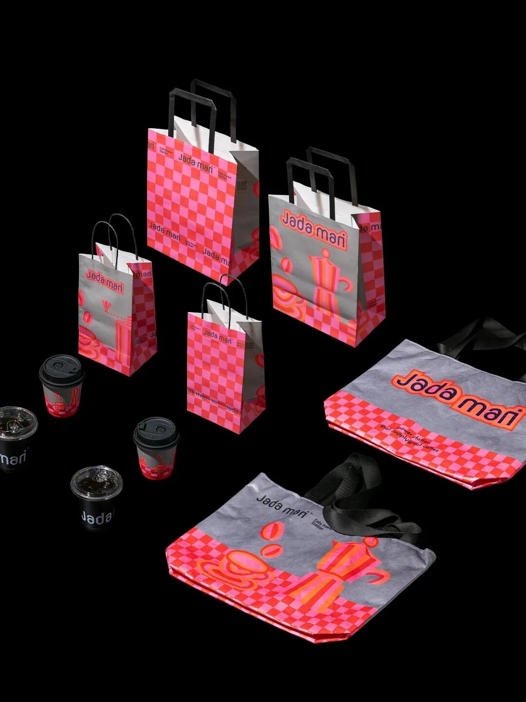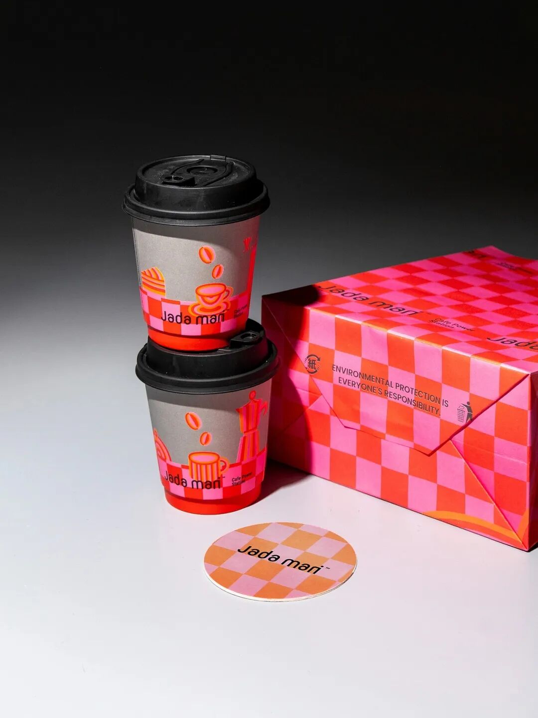 包装方面,整体运用了鲜明的色彩搭配,红粉棋盘格图案充满活力与时尚感,视觉冲击力强,极易在众多咖啡包装中脱颖而出。包装上的咖啡相关图案(如咖啡壶、咖啡杯、咖啡豆等)直观地传达出产品属性,同时也增添了趣味性。从杯装到手提袋,整体设计风格统一且富有个性,契合年轻消费者对潮流、个性的追求,能有效吸引喜欢尝试新鲜事物、注重包装颜值的群体。