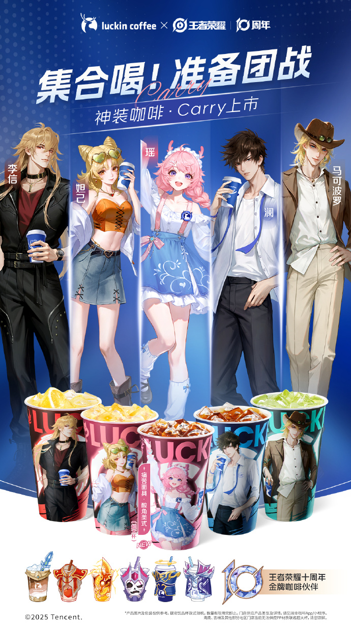 值王者荣耀十周年之际,瑞幸咖啡作为其金牌咖啡伙伴,于 10 月 13 日正式开启「峡谷下午茶」主题联动。
