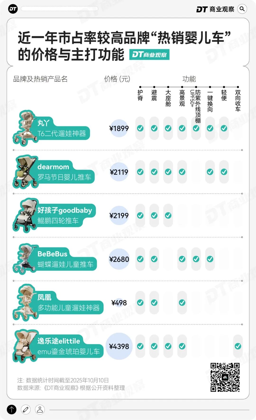 而且护脊婴儿车的概念走红后,我们发现,在近一年市占率排名较高的母婴品牌热销产品中,护脊已经成为婴儿车对外强调的功能标配。