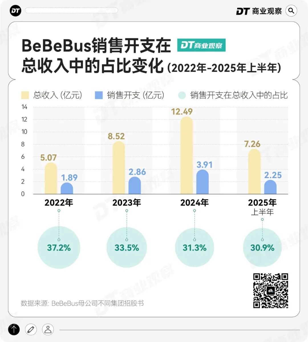 从结果来看,2022年至2025年上半年,BeBeBus私域收入占比从1.7%一路上升到了7.7%,2025年上半年私域收入达到了5630万元。