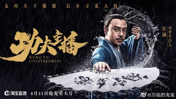 8月29日,@万能的淘宝官微放出了一组武侠风十足的海报,表示要推出一部武侠大片《功夫主播》。