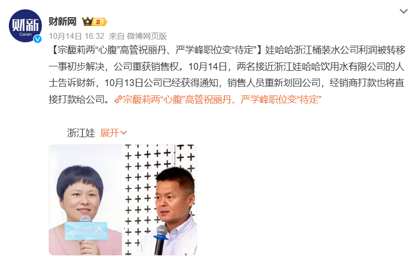 首先,是人事变故,宗馥莉的两大核心干将——严学峰和祝丽丹,岗位直接变成了“待定”。