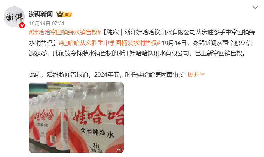 结果她一走,娃哈哈就火速收回了桶装水销售权,这条路直接被堵死。