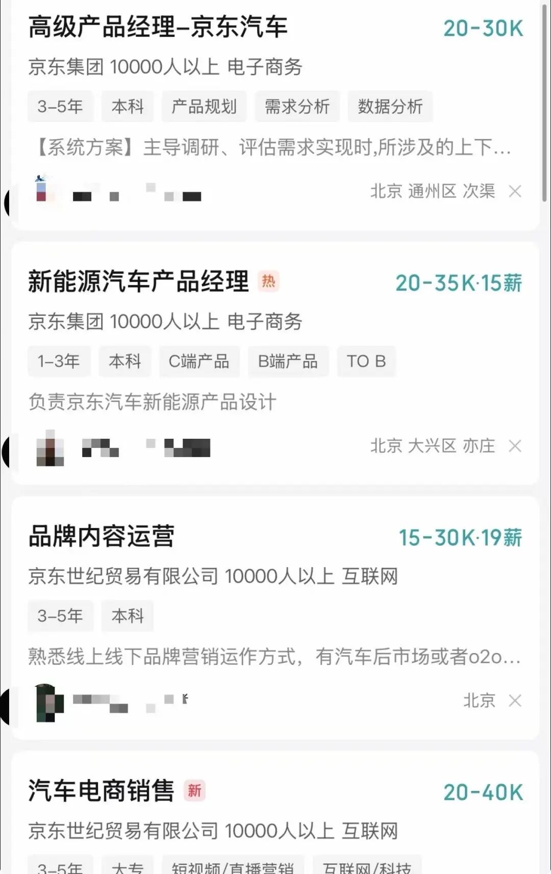这批岗位的分布说明一切,京东不打算亲手去造车,而是搭建一整套汽车零售基础设施。