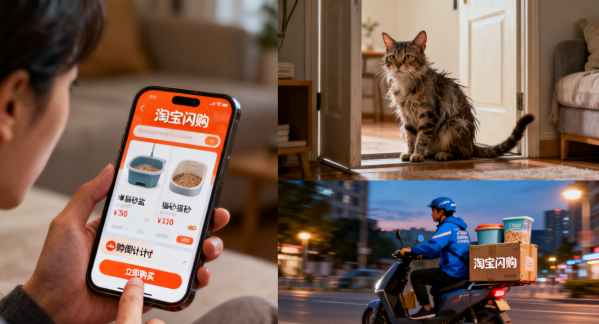 举个例子,上个月,二姐有个朋友在小区捡到一只流浪猫,起意想收养下来。可家里却急缺猫砂盆、猫砂这样的必需品,小区方圆几公里内也没处购买,最后是在闪购下单请外卖小哥“救了场子”。