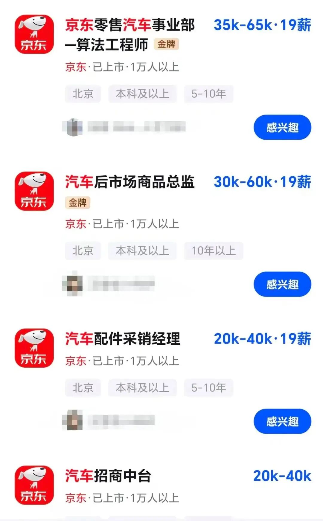 而为了撑起这个生态,京东最近还在疯狂招兵买马,多个汽车相关岗位年薪已经突破百万: