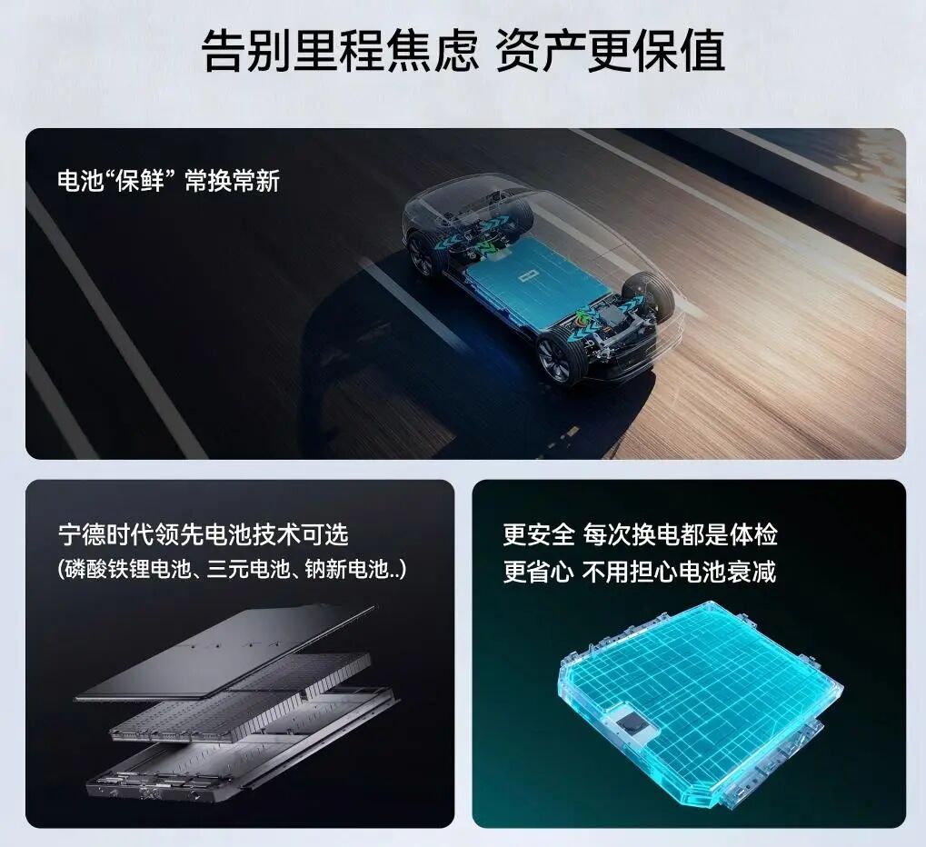 更让人眼前一亮的是,这款车还支持宁德时代的“巧克力换电”技术,99秒即可换好一块电池,续航焦虑或被彻底抹平,充电等待亦不再是电车用户的痛点。