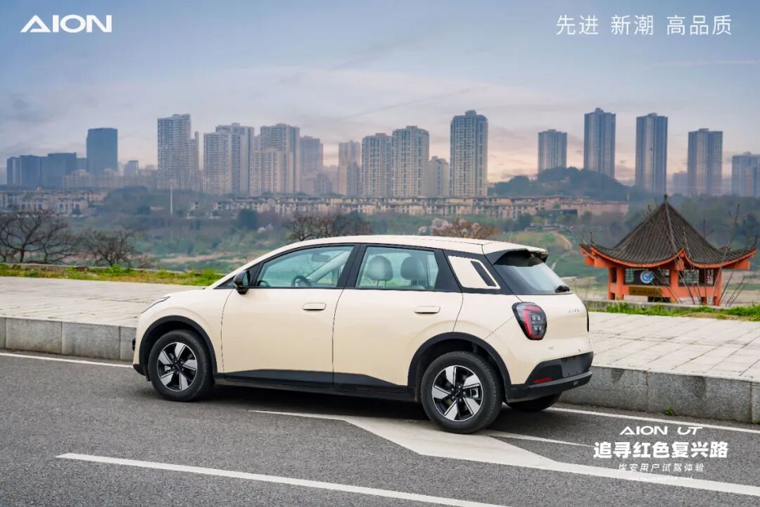 再看埃安UT,这款纯电动两厢车于今年2月份上市,定位“7万级舒适好停”,在售版本续航为330-420公里,售价区间在6.98万到10.18万元。