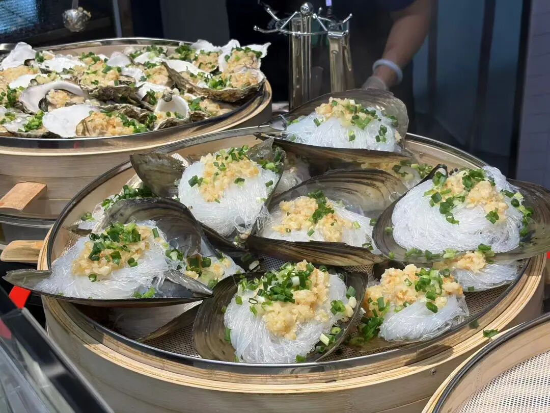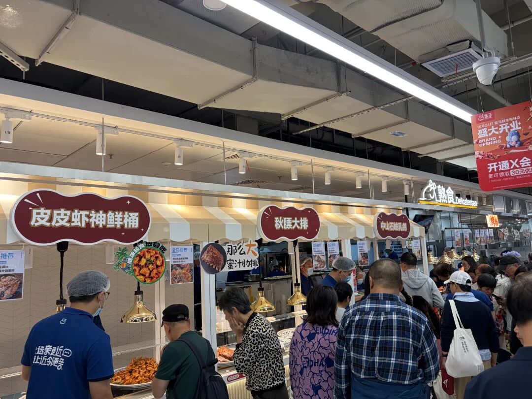 此次新店的熟食区也颇具烟火气,契合时令的“秋膘大排”、现煎鱿鱼、蒜蓉生蚝、皮皮虾、招牌烤鸡、卤味炸货,应有尽有。
