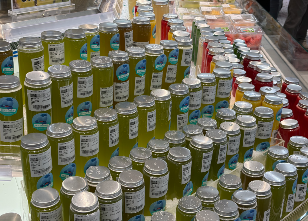 而在鲜果区,除了新鲜的果切,梅林店还有9.9元的果蔬鲜榨,包括西瓜汁、甘蔗汁等等。