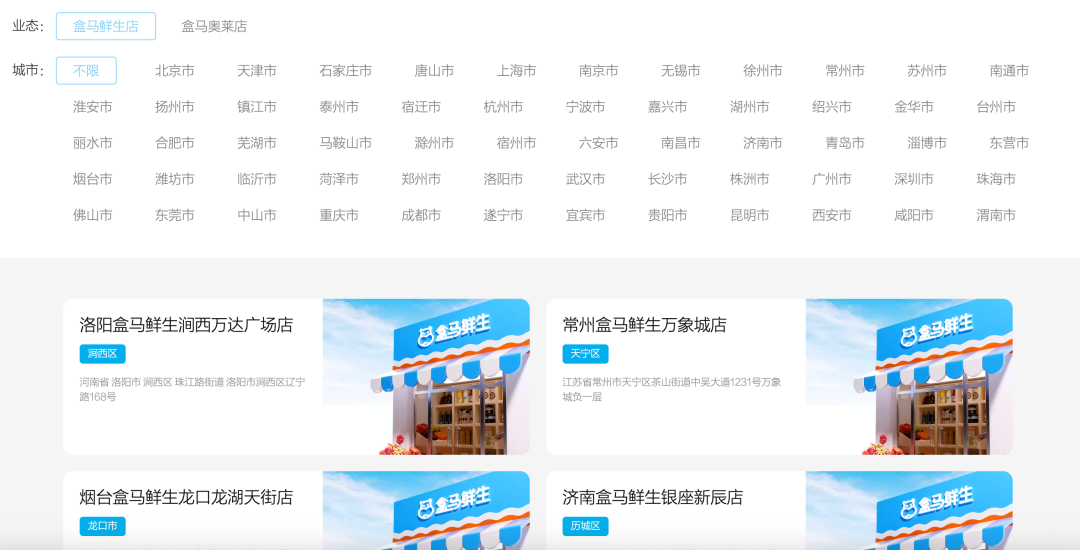 数据显示,盒马在去年新开的72家门店中,三分之一都落在了山东、江苏、安徽、河南等二三四线城市。