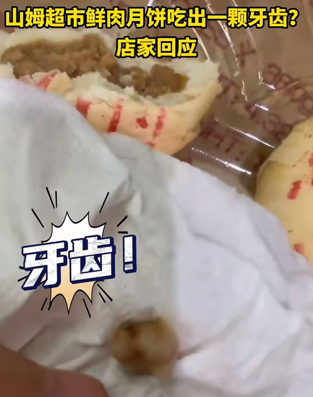 几乎在同一时间,一位上海网友在山姆枣泥核桃蛋糕中,竟吃出了一颗牙齿。