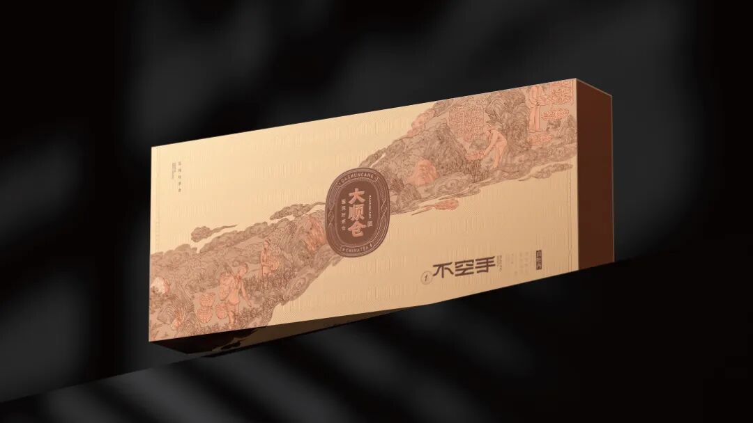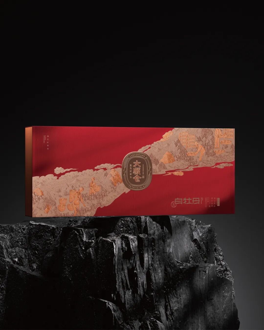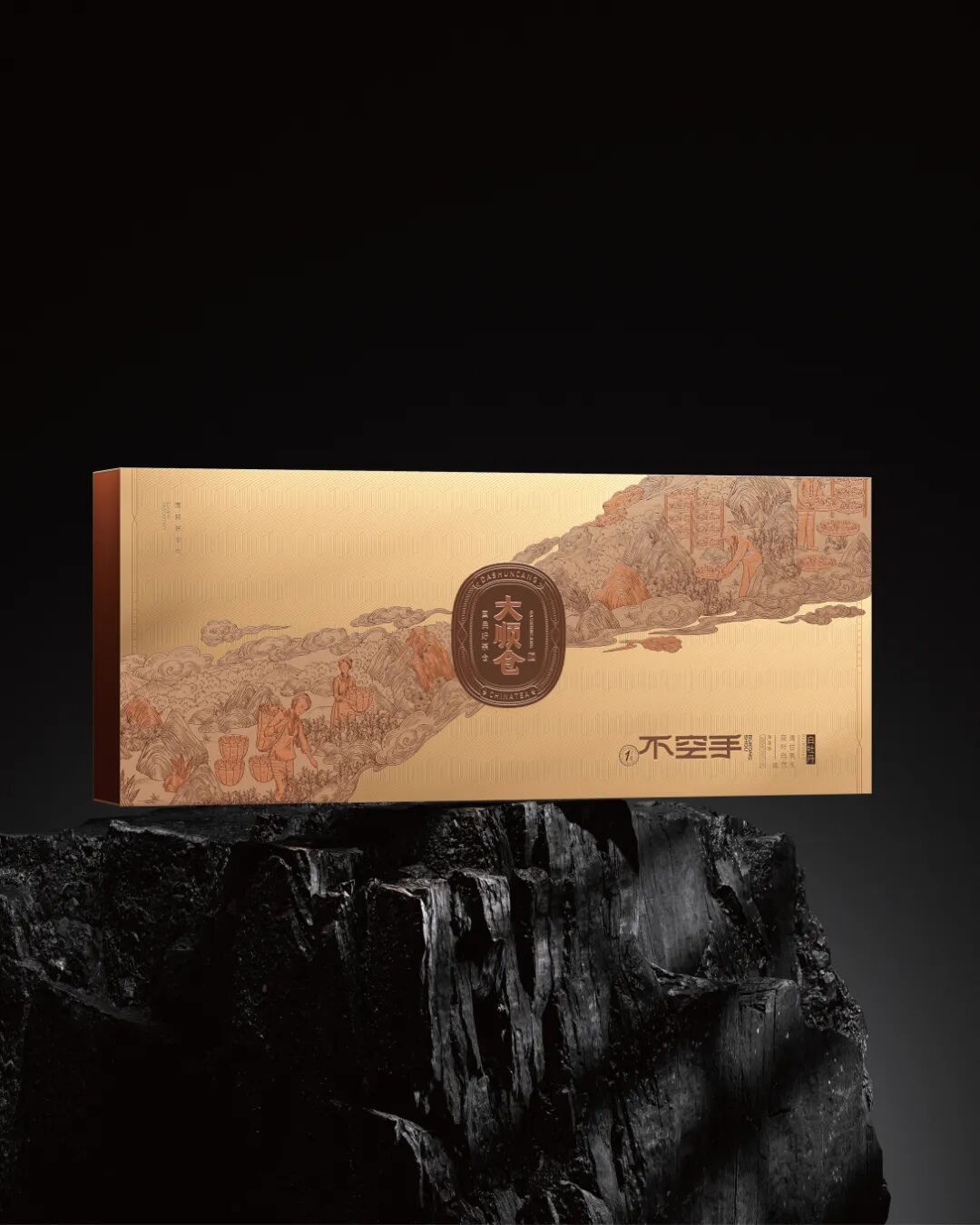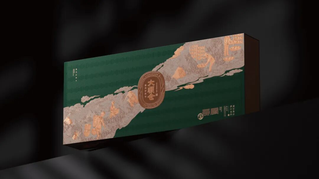 大顺仓系列茶叶包装,设计创意颇为巧妙。三款包装分别以浅棕、红、绿等作为主色调,搭配古朴的线条勾勒出采茶、制茶等劳作场景,仿若一幅动态的茶文化长卷。中间的 “大顺仓” 标识采用复古的徽章样式,与整体的传统画风相得益彰,传递出对茶叶品质的珍视与对传统制茶工艺的致敬。这种设计将茶文化的历史感与生活气息融入其中,让消费者能从包装上直观感受到茶叶背后的故事与工艺传承,唤起对传统茶文化的情感共鸣。