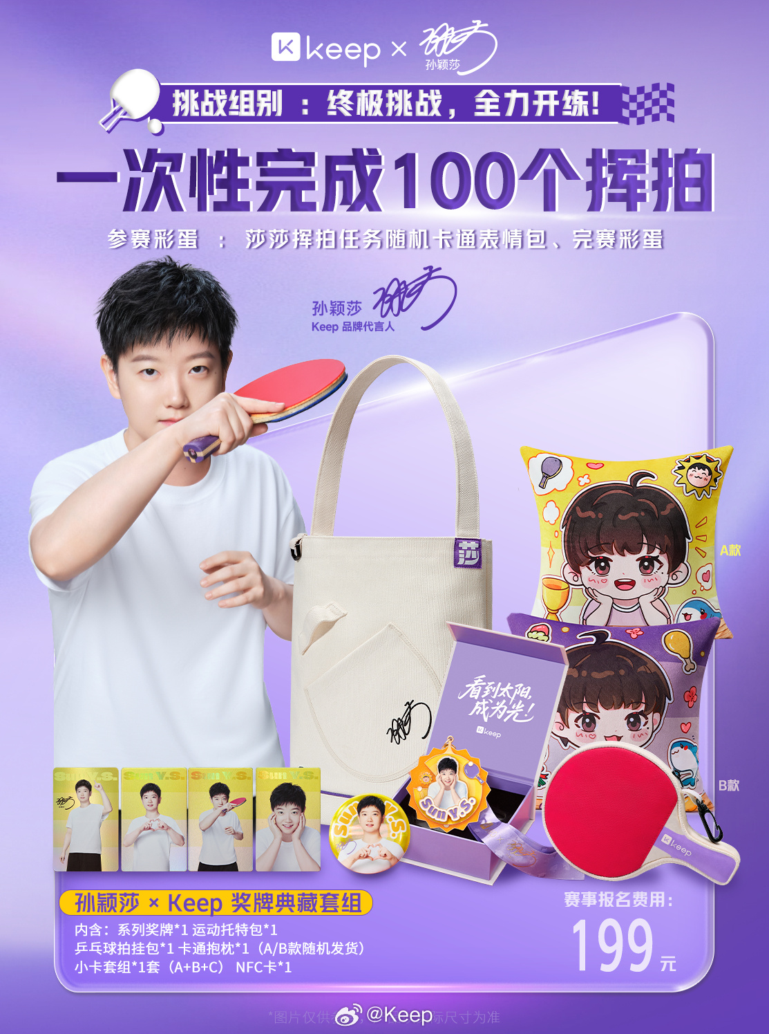 今日,运动科技平台Keep正式官宣乒乓球世界冠军孙颖莎成为其品牌代言人,并以「看到太阳,成为光」为主题,推出系列线上赛事及专属周边产品。