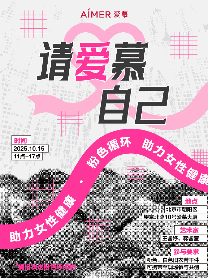 2025年粉红丝带月期间,爱慕携手艺术家王睿妤、蒋睿莹,以粉红丝带为灵感,连结个体生命与集体意识,通过对旧物新生的挖掘,对柔韧力量的捕捉,唤起对自身的关爱和对健康的关注 。