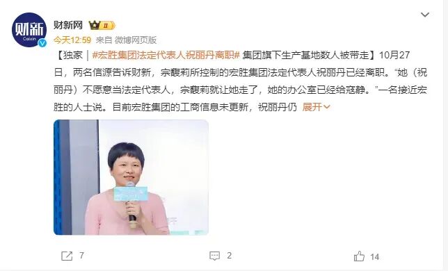 要知道,祝丽丹此前在多达158家“娃哈哈系”“宏胜系”企业中担任法定代表人或高管,堪称宗馥莉的心腹。