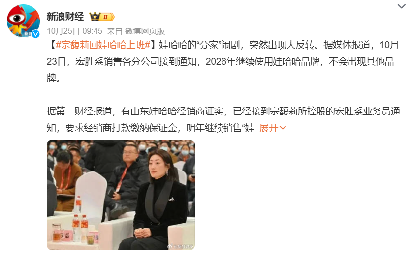 结果呢?“娃小宗”仅仅存活了41天,比网红餐厅的寿命还短。10月23日,经销商们收到通知,2026年继续用“娃哈哈”。